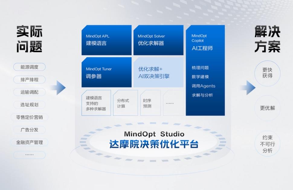 同時(shí),達(dá)摩院還不斷突破求解器原有框架,結(jié)合中國(guó)工業(yè)場(chǎng)景的現(xiàn)實(shí)需求,相繼推出了自研建模語(yǔ)言、調(diào)參器、優(yōu)化平臺(tái)。今年8月,打造決策推理大模型,上線具備數(shù)學(xué)優(yōu)化技術(shù)能力的AI工程師MindOptCopilot。用戶無(wú)需了解復(fù)雜的數(shù)學(xué)或編程知識(shí),直接使用自然語(yǔ)言提問(wèn)優(yōu)化問(wèn)題,即可由MindOptCopilot自動(dòng)數(shù)學(xué)建模,將問(wèn)題轉(zhuǎn)化為線性規(guī)劃和混合整數(shù)線性規(guī)劃的優(yōu)化模型,并編碼和調(diào)用軟件,計(jì)算出最佳答案。達(dá)摩院決策智能實(shí)驗(yàn)室負(fù)責(zé)人印臥濤表示:“從4年前起步的時(shí)候,達(dá)摩院求解器就把目標(biāo)定為下一代的技術(shù),而不是僅僅是追趕國(guó)際領(lǐng)先廠商。”