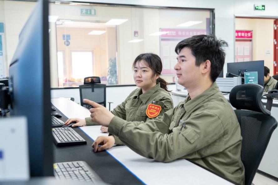 龍泉換流站運維人員張榕芝和謝智遠正在監(jiān)盤。余馨瑤攝