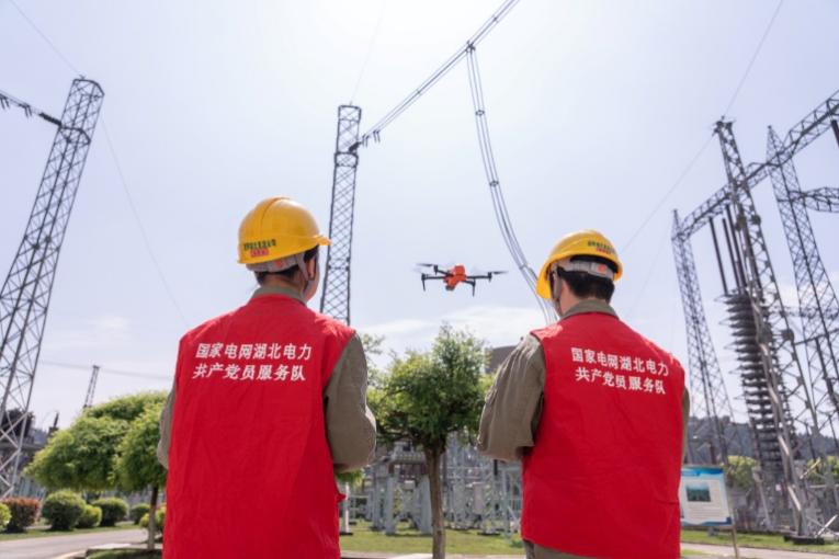 龍泉換流站運維人員余馨瑤和謝智遠正在用無人機巡檢。程文皓攝