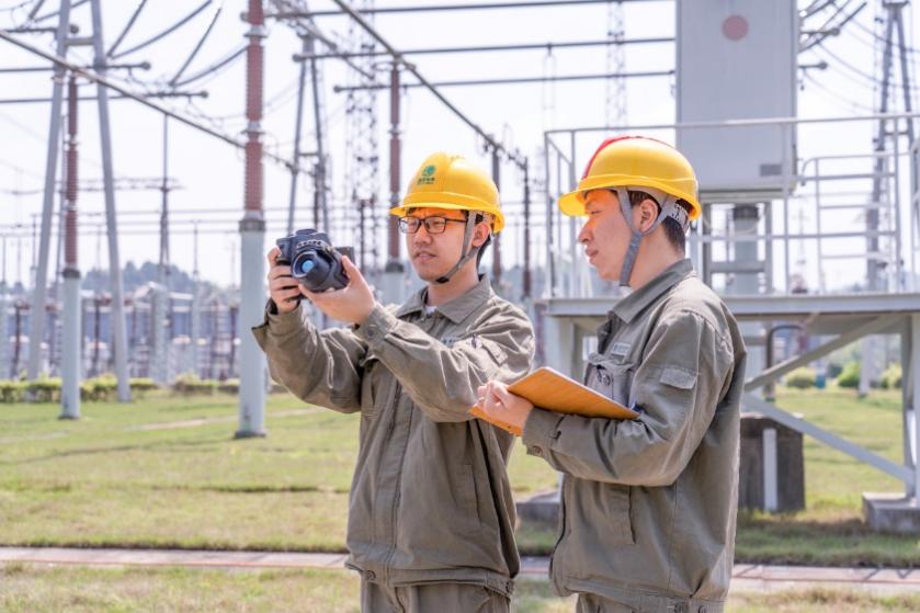 龍泉換流站運維人員蘭澳和楊佳正在對一次設(shè)備測溫。余馨瑤攝