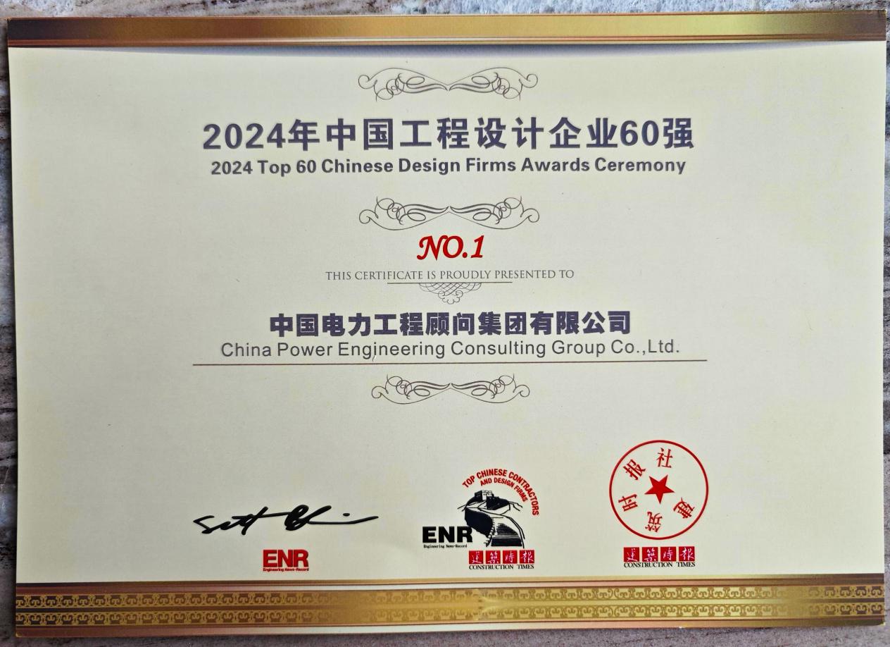 五連冠!中國能建中電工程穩(wěn)居中國工程設計企業(yè)60強第一