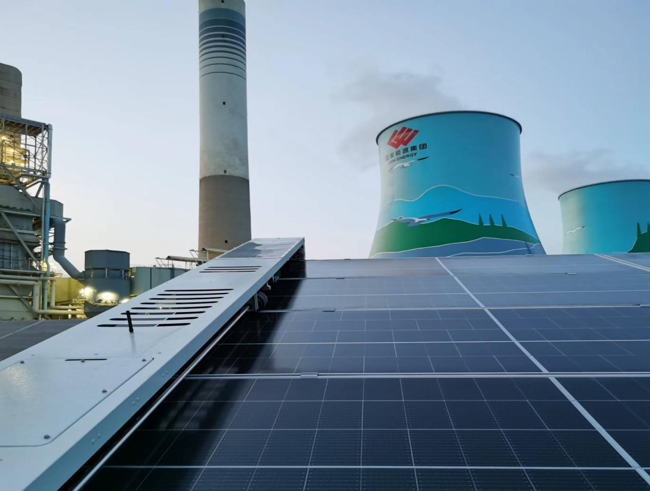國能寧海電廠光伏電站石膏雨智能清洗后的效果。