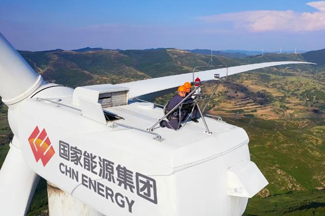 龍源電力工作人員開展風機維護工作。