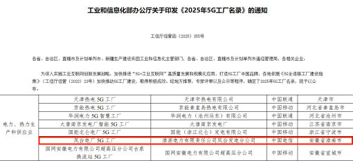中國能源新聞網訊(劉志飛 王蒙)近日,國家工業(yè)和信息化部信息通信管理局發(fā)布了《2025年5G工廠名錄》公示名單,淮浙電力有限責任公司鳳臺發(fā)電分公司(以下簡稱“鳳電公司”)5G工廠名列其中,是浙江省能源集團有限公司首次入選。