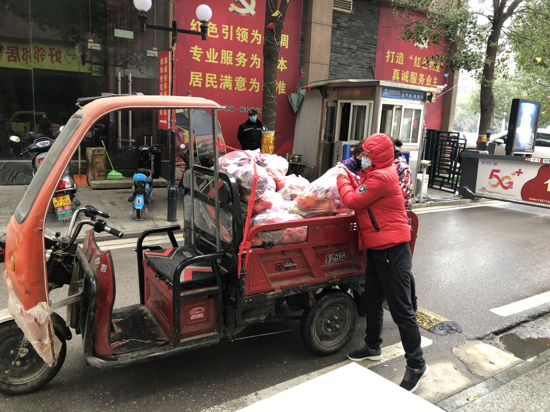 黃莉娜搬運(yùn)幫小區(qū)居民買的水果和蔬菜