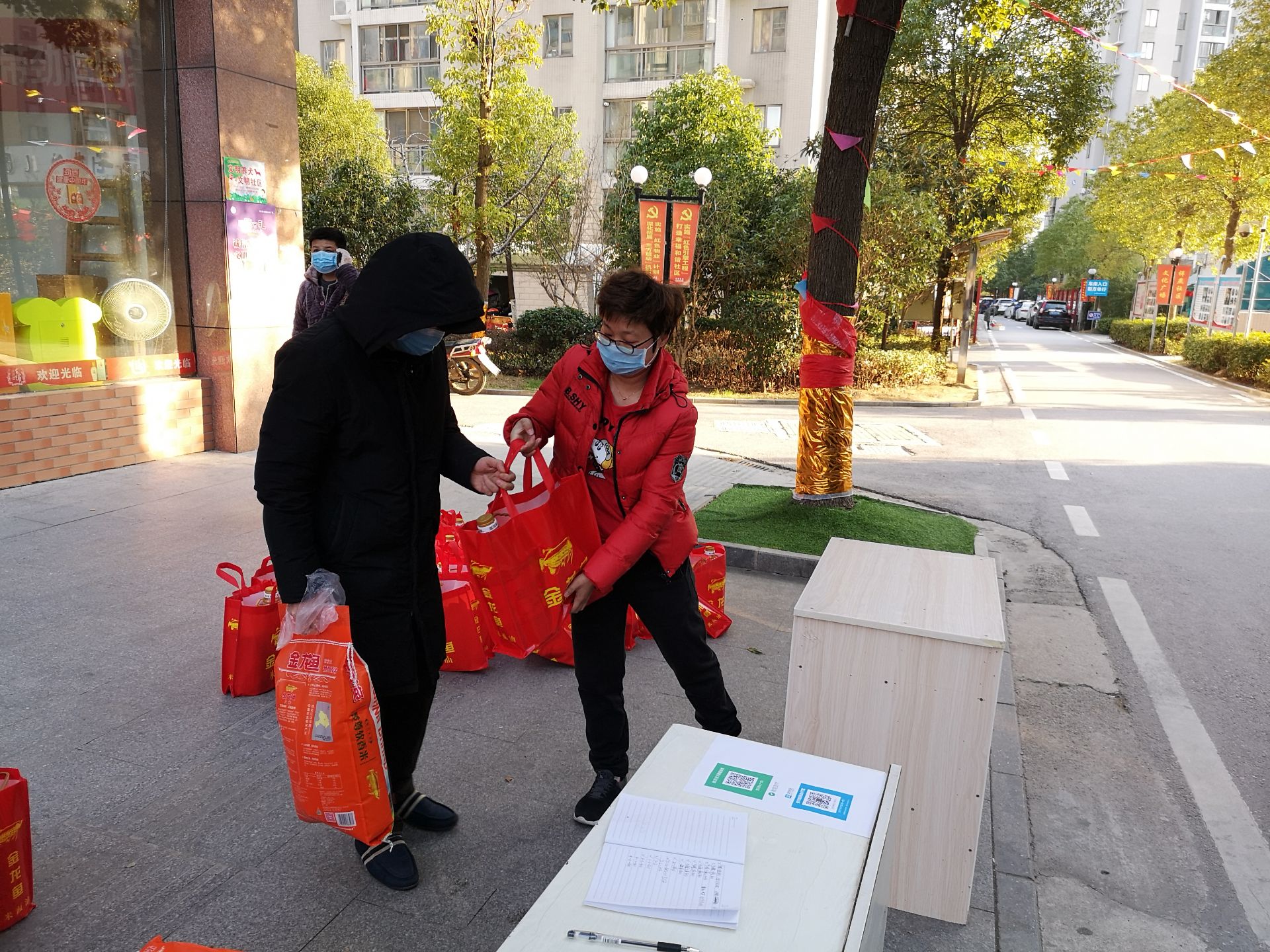 黃莉娜搬運(yùn)分發(fā)采買的物資
