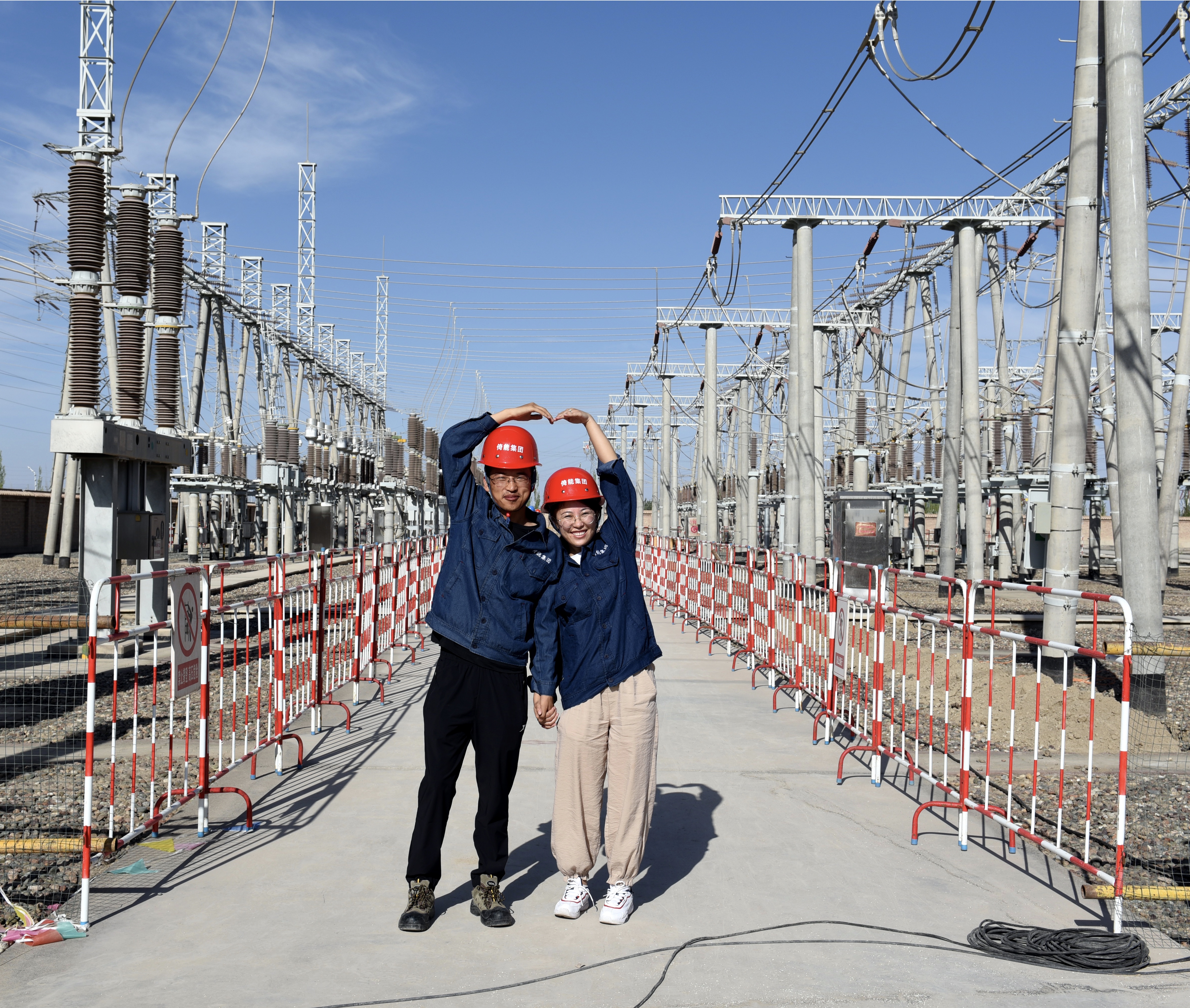 “身邊有你,工地在哪,家就在哪!”,在新疆格庫(kù)鐵路110千伏輸變電工程工地上的蘭州供電公司倚能集團(tuán)師正平和朱玉彤被大家稱為工地上的最美夫妻!