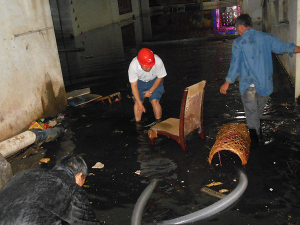 時間撥回2014年的5月20日,淡水街道轄區(qū)遭受10天內(nèi)的第三次大暴雨,地勢較低的橋背、壩尾、石徑、第一城等地區(qū)再次遭受水浸。面對如此兇險的雨勢和高漲的積水,時任班長的練運良立即組織班組人員奔赴現(xiàn)場,勘查各個危險點。在當時的第一城地下室,水位不斷上漲,為了不浸泡到地下配電設(shè)備和加快復(fù)電,練運良連夜帶領(lǐng)班員用抽水機進行抽水。但由于積水中淤泥多,而且有不少生活垃圾,使排水工作進行的并不順暢。這時,練運良挽起褲腿,親自用手清理,直到看見不斷排出的積水,他終于露出微笑,因為水位每退一點,離送電的時間就更近一些。