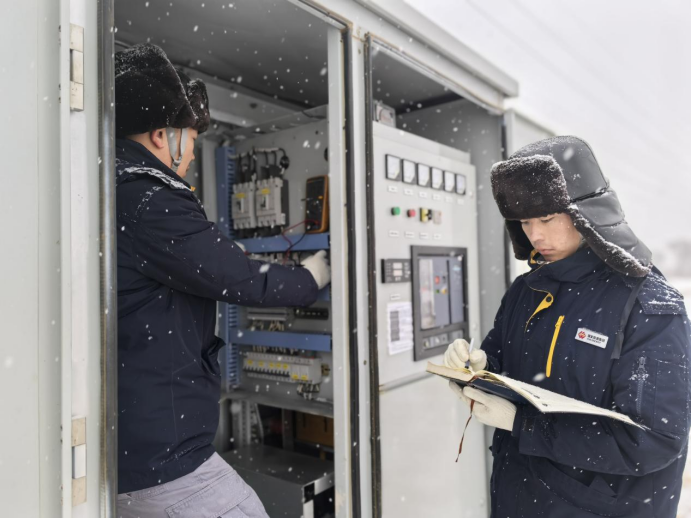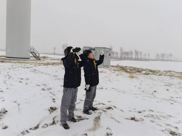 “就在1月31日,咱們國華投資公司1月累計發(fā)電量35.56億千瓦時創(chuàng)新高,達成了2025年第一個‘開門紅’,我們風(fēng)電場作為國華投資蒙東區(qū)域大型的風(fēng)電場,必須好好守護這份來之不易的榮譽,為下一個創(chuàng)新高作出我們的貢獻!現(xiàn)在針對搶修,我對全體隊員做如下分工……”這幅塞上飄雪的美景現(xiàn)在卻無人欣賞,國華投資蒙東分公司國泰風(fēng)電場場長劉德軍緊盯主控室內(nèi)大屏上的各項數(shù)據(jù),神情嚴(yán)肅地進行人員分工,國泰風(fēng)電場的全體工作人員也在熱火朝天地準(zhǔn)備工具、穿好防寒衣物,準(zhǔn)備上“戰(zhàn)場”。原來是這次突如其來的大雪讓風(fēng)力發(fā)電機組的風(fēng)速計覆滿了冰,機組運行出了問題,導(dǎo)致部分風(fēng)機直接停機。情況緊急,必須抓緊搶修!