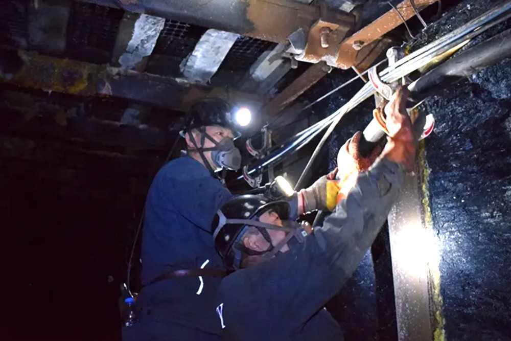 傍晚7點多,中班生產(chǎn)班的工友們陸續(xù)來到工作現(xiàn)場,滿身滿臉污泥油漬的郭學平和中班跟班領導叮囑一些工作事項后,和檢修班組成員一起升井。