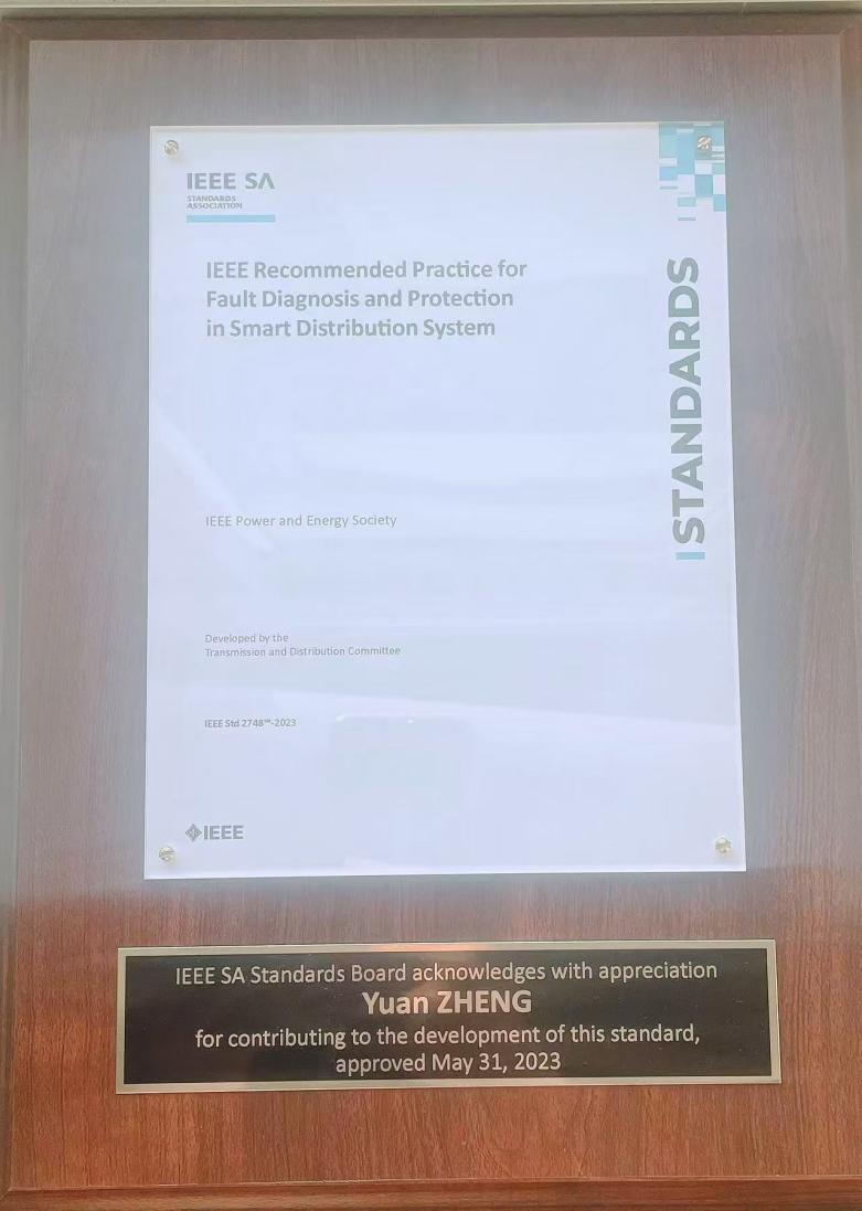 2020年,鄭圓作為P2748工作小組秘書,參與到(配電網(wǎng)不同運行方式下的故障診斷和保護配置策略)的編制之中。2021年至2022年,該標(biāo)準的某核心章節(jié)接到顛覆性的評論意見,標(biāo)準報送工作陷入僵局。作為工作小組秘書,鄭圓本著對標(biāo)準質(zhì)量負責(zé)的態(tài)度,頂著項目嚴重超期的壓力,針對該章節(jié)的原稿和新的建議稿,逐字逐句的做了大量的中英文校核、對比分析,確保了標(biāo)準的技術(shù)正確和表述嚴謹,最終得到工作組主席的支持,重啟該章節(jié)編寫。鄭圓及團隊成員的努力付出,收獲了IEEE標(biāo)準管理委員會的一致肯定與感謝。