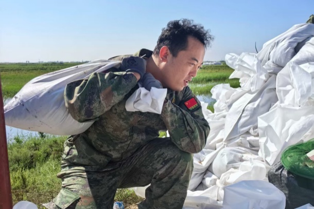 連續(xù)多日,每當(dāng)累到岔氣,王旭就捂著腰弓會兒身,喘兩口粗氣又接著扛,心里只有一個念頭:“多出一份力,堤壩就多一分安全?!?/p>