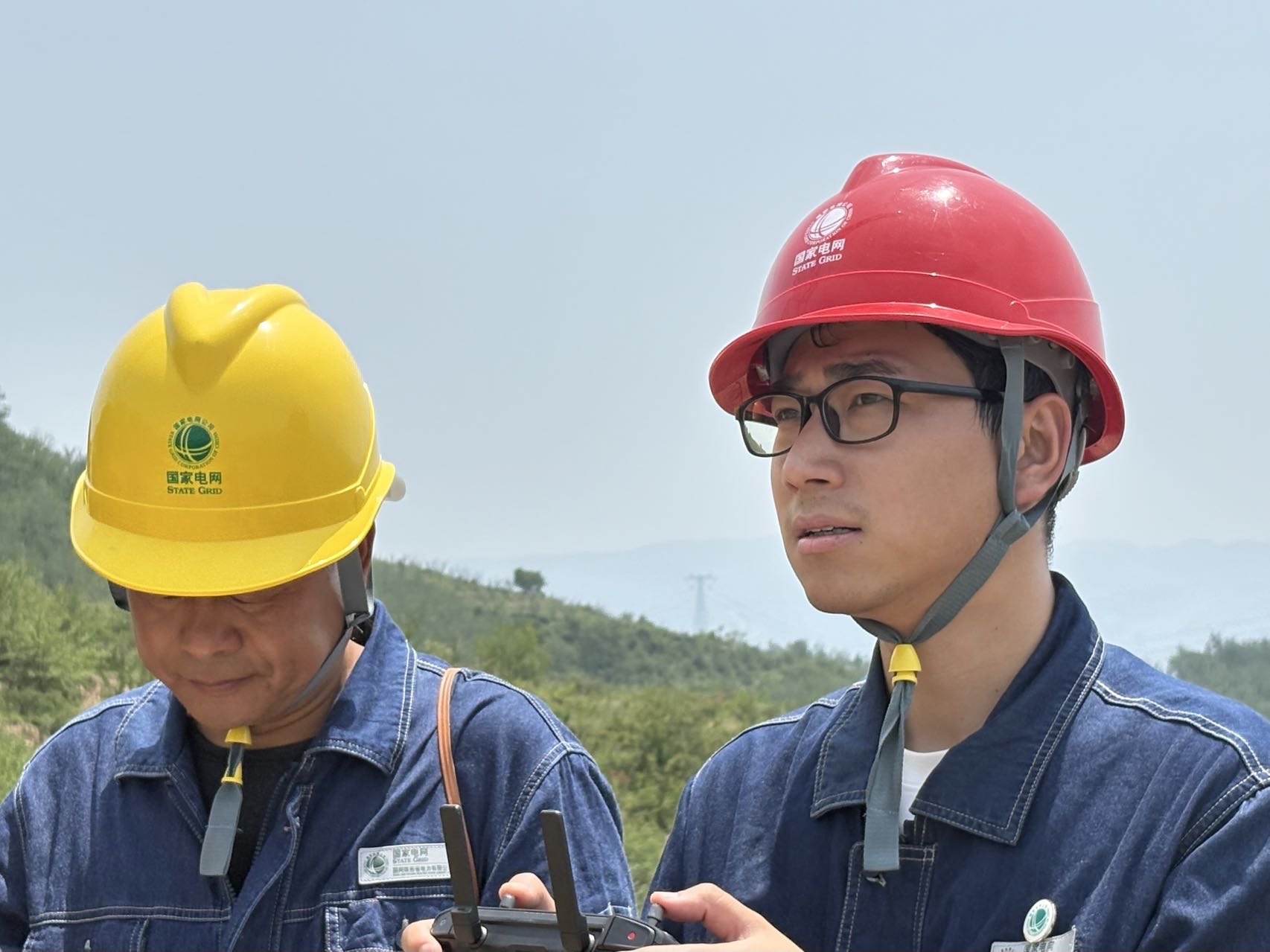 李佳豪使用無人機(jī)巡視線路(右)。許娜 攝