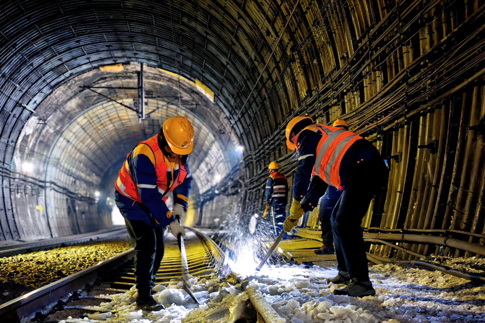 蛇口峁隧道內(nèi)正在進(jìn)行除冰作業(yè)。