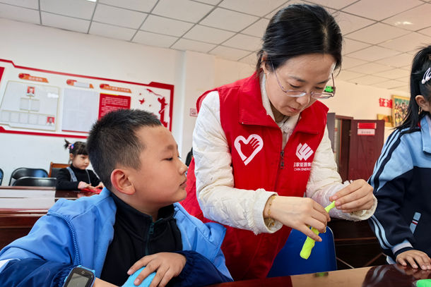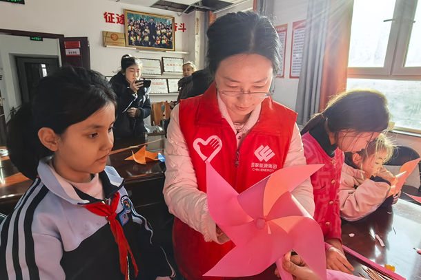 五月的陽光穿過立井社區(qū)活動室的玻璃窗,在課桌上灑下斑駁的光影。二十幾個孩子圍坐在環(huán)形課桌前,眼睛亮晶晶地盯著講臺上旋轉(zhuǎn)的白色風機模型。這是5月6日午后,新疆電力龍源新能源“紅馬甲”志愿服務隊帶來的特別課堂——當西北戈壁的風車傳奇,遇見城市孩童的好奇心。