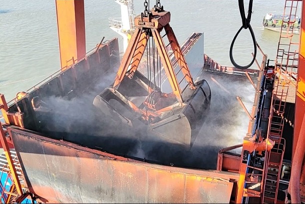 諫壁公司卸船機(jī)荷電抑塵系統(tǒng)工作情況。
