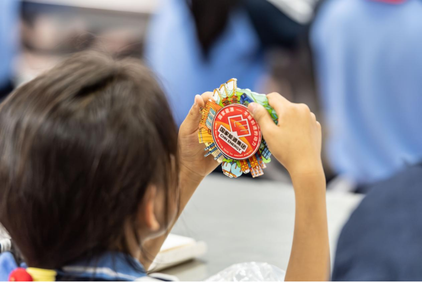 國(guó)華希望中心小學(xué)學(xué)生觀(guān)賞國(guó)華投資贈(zèng)送的文創(chuàng)產(chǎn)品。