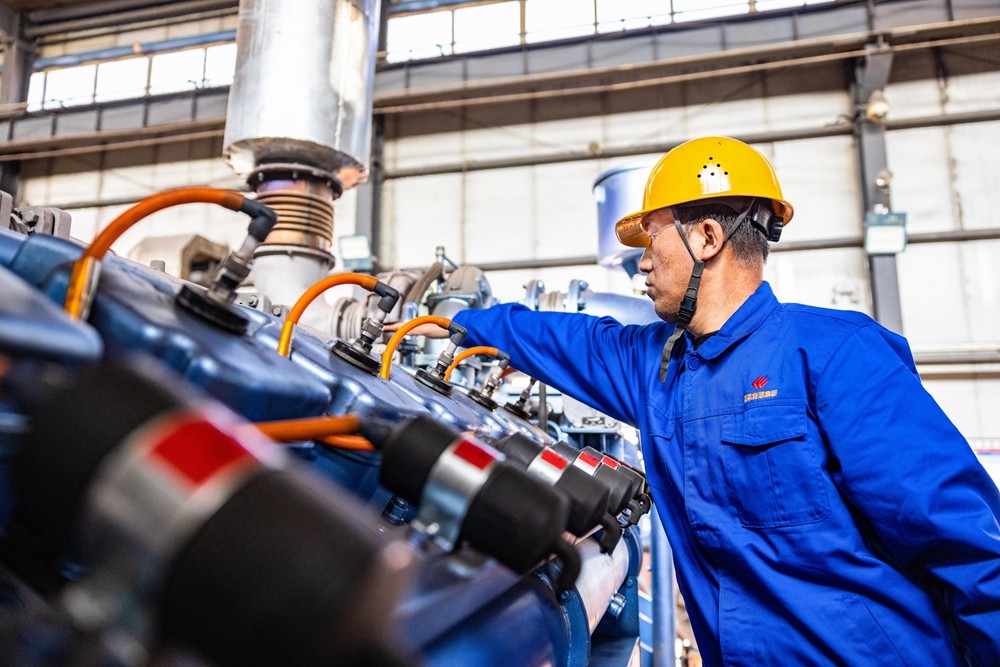 烏海能源天潔電力公司職工正在檢查瓦斯發(fā)電機(jī)組運(yùn)行情況。