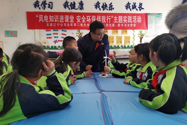 志愿者為孤兒院發(fā)放“風電主題夢想禮包”。