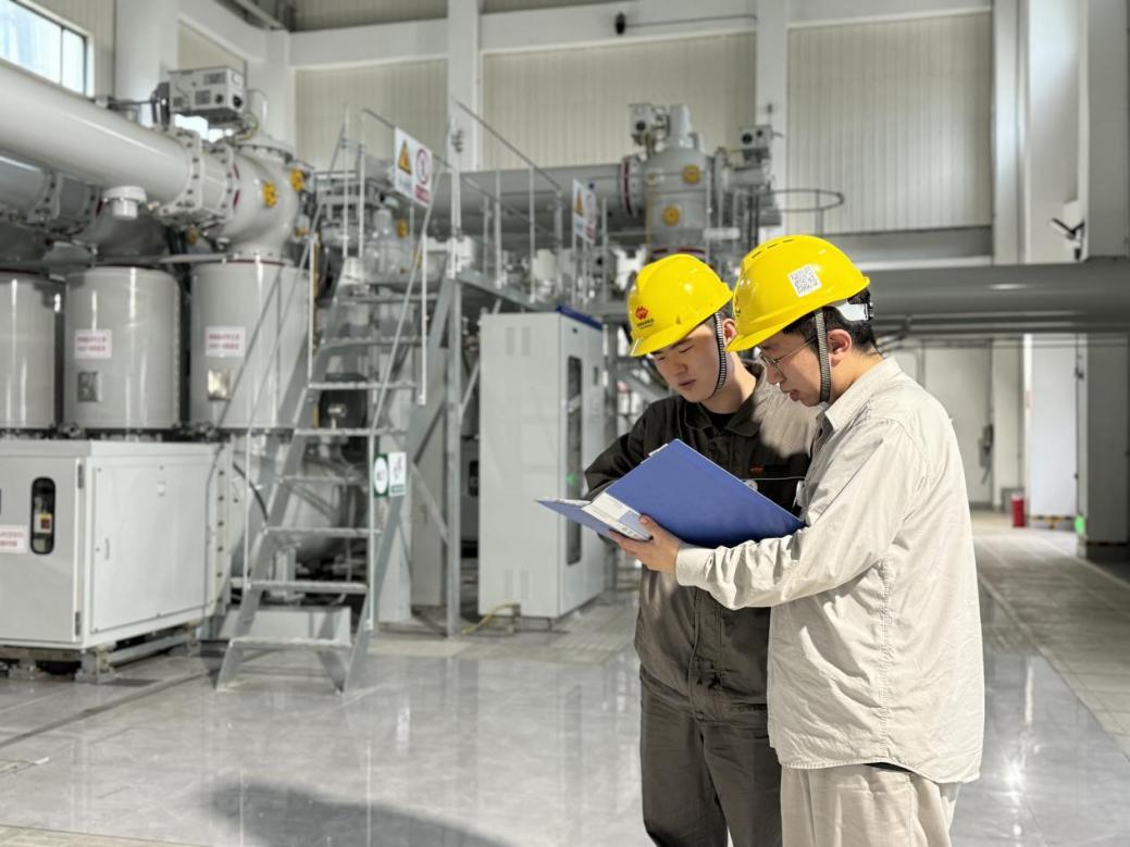 運行人員在500kV GIS室核對數(shù)據(jù)。