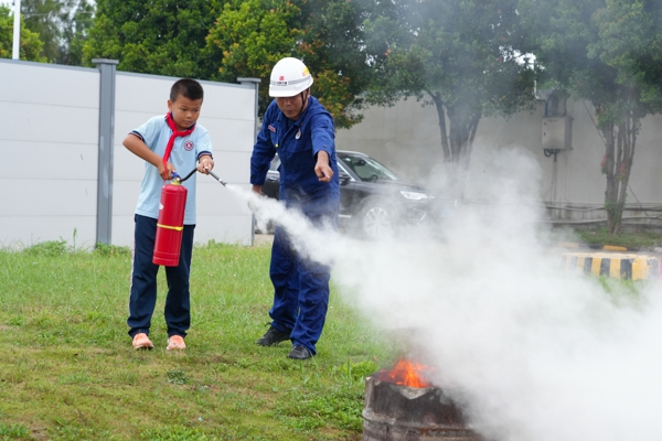 該公司專職消防隊為師生講解消防安全知識,普及常見滅火器使用方法,介紹消防車等消防設施。參與活動的師生親身體驗了干粉滅火器滅火,近距離參觀消防車,掌握了必備的消防技能,現(xiàn)場聽取“哇”聲、掌聲一片。