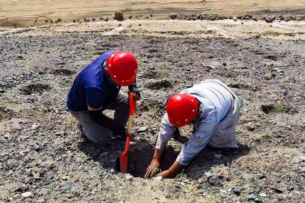 “我們選了12種草籽,分‘早、中、晚’三期生長——早熟的披堿草先固沙,中期的紫花苜蓿養(yǎng)地,晚熟的芨芨草防沖刷,就像給邊坡配齊了‘生態(tài)接力隊’?!备叻逭归_一張種植圖,圖上密密麻麻地標著每個區(qū)域的草種配比,“怕草籽被風(fēng)吹跑,我們還混了燕麥‘護苗’,這叫‘以短養(yǎng)長’。”