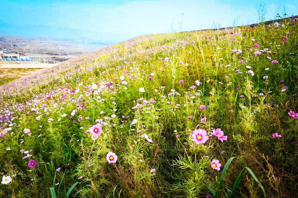 “看這草,根扎得多深?!彼^察著草根部,“以前這兒風(fēng)一吹就起沙,現(xiàn)在草把泥‘綁’住了,泥又給草‘喂’養(yǎng)分,利用微生物保水技術(shù)與工藝,植物成活后可少澆水甚至不澆水,這不就形成了良性循環(huán)嘛?!贝藭r,晚霞滿天。這片曾被視作“生態(tài)死角”的排土場,正用1.2萬方黃河底泥的“蛻變”,寫下人與自然和諧共生的嶄新篇章。