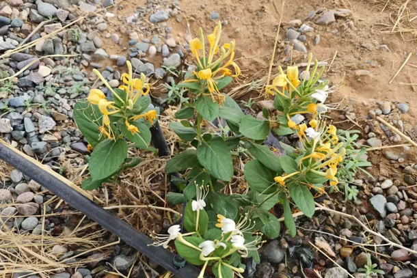 冬去春來,科研人員的辛勤耕耘終于迎來收獲。近期,在各方的共同努力下,治沙創(chuàng)新技術測試與板下經濟種植實證基地全面建成。而作為基地建設的重要成果之一,金銀花的成功種植標志著騰格里大基地“板上發(fā)電、板下種植”的融合發(fā)展模式取得了階段性勝利,“綠水青山就是金山銀山”有望在騰格里沙漠變成現(xiàn)實。