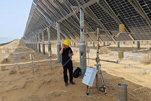 在此基礎上,龍源電力治沙團隊開始思索,如何進一步挖掘這片土地的潛在價值,在實現(xiàn)可持續(xù)發(fā)展的同時,也為同類項目提供可復制、可參考的范本。2024年10月,龍源電力設計院依托《光伏治沙與生態(tài)治理體系研究》科技項目,與中國科學院西北生態(tài)環(huán)境資源研究院攜手合作,正式啟動騰格里沙漠治沙創(chuàng)新技術測試與板下經濟種植實證基地建設。來自龍源電力設計院的光伏設計師楊奕穎化身“老農”,一頭扎進基地開展板下經濟的實證研究。