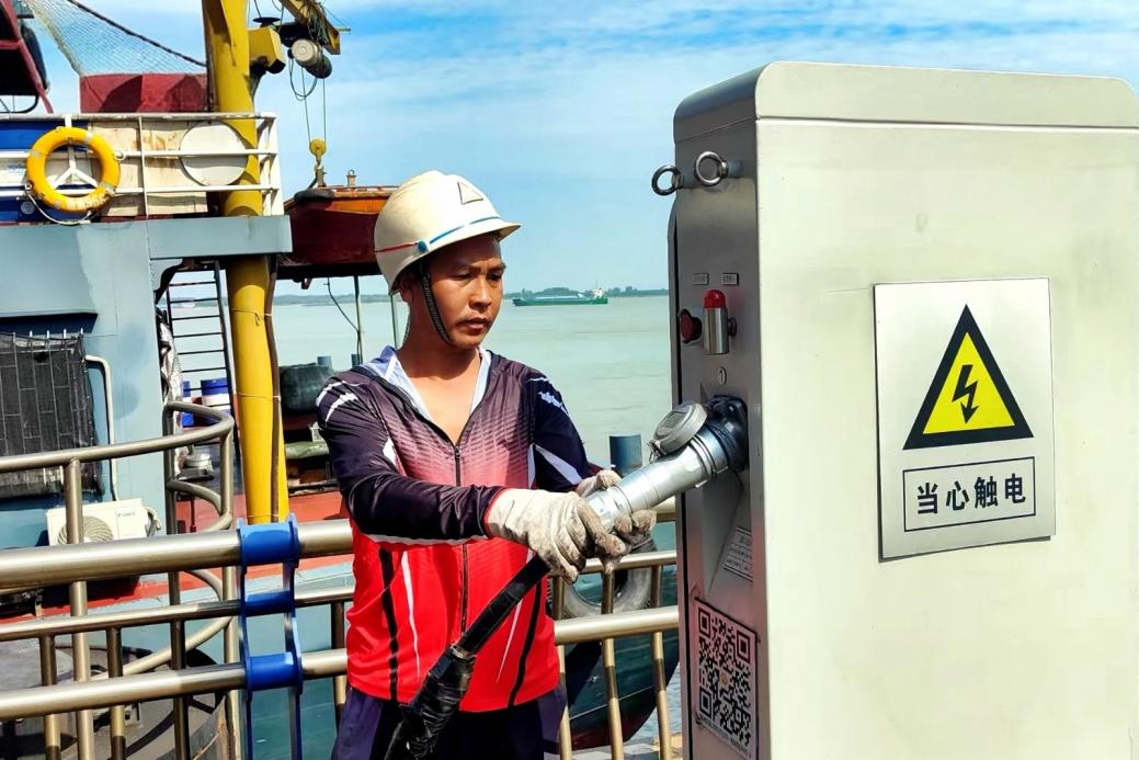 “以前柴油發(fā)電噪音大,現(xiàn)在用岸電,成本降了一半,還能睡個安穩(wěn)覺?!薄吧袢A562”號船員李師傅指著手機APP,“一鍵取電、斷電,方便得很!”數(shù)據(jù)顯示,該廠每年提供岸電2萬千瓦時,為船舶主節(jié)約燃油4.5噸,降低成本3.4萬元,減少碳排放13.9噸,更讓碼頭噪聲從85分貝降至60分貝以下。配套建設(shè)的生活污水接收裝置與垃圾分類站,形成“零排放”環(huán)保閉環(huán),連江豚也被這方清凈水域吸引,頻頻在碼頭附近嬉戲。