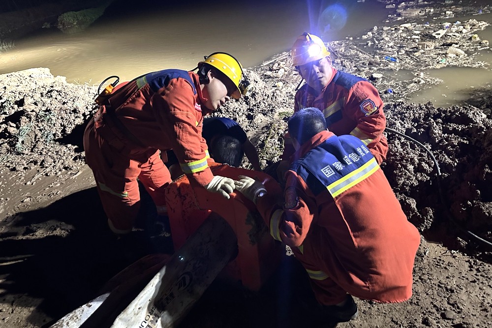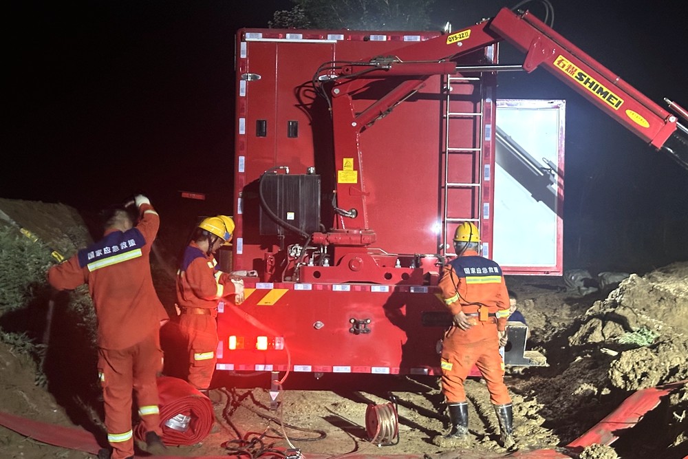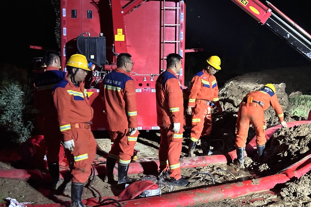 袁永年和大家伙科學(xué)制定搶險方案、充分評估現(xiàn)場風(fēng)險、精準(zhǔn)布置搶險任務(wù)后,盯在現(xiàn)場,一方面與當(dāng)?shù)刎?fù)責(zé)人做好各種溝通協(xié)調(diào)工作,一方面提醒指戰(zhàn)員在做好自身安全防護(hù)的基礎(chǔ)上,高效有序開展搶險工作,一有機(jī)會就趕過去搭把手。指戰(zhàn)員們協(xié)調(diào)配合,科學(xué)合理布置排水泵位置、尋找可靠電源、連接排水管路……