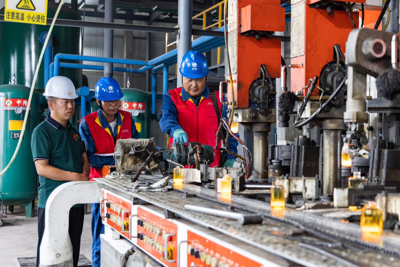 在位于甘肅張掖經濟技術開發(fā)區(qū)的甘肅富地金虹玻璃制品有限公司日用玻璃生產車間內,三條自動化生產線正滿負荷運轉。經過配料、熔制、成型、冷卻、質檢等一系列工序后,一個個大小不一、款式多樣的化妝品瓶陸續(xù)從傳送帶輸送出來。國網甘肅張掖甘州區(qū)供電公司三閘供電所工作人員朱峰、陳加強,正在認真地對車間內高低壓設備、配電箱、照明設備進行安全用電檢查,全力保障生產車間用電設施安全運行。
