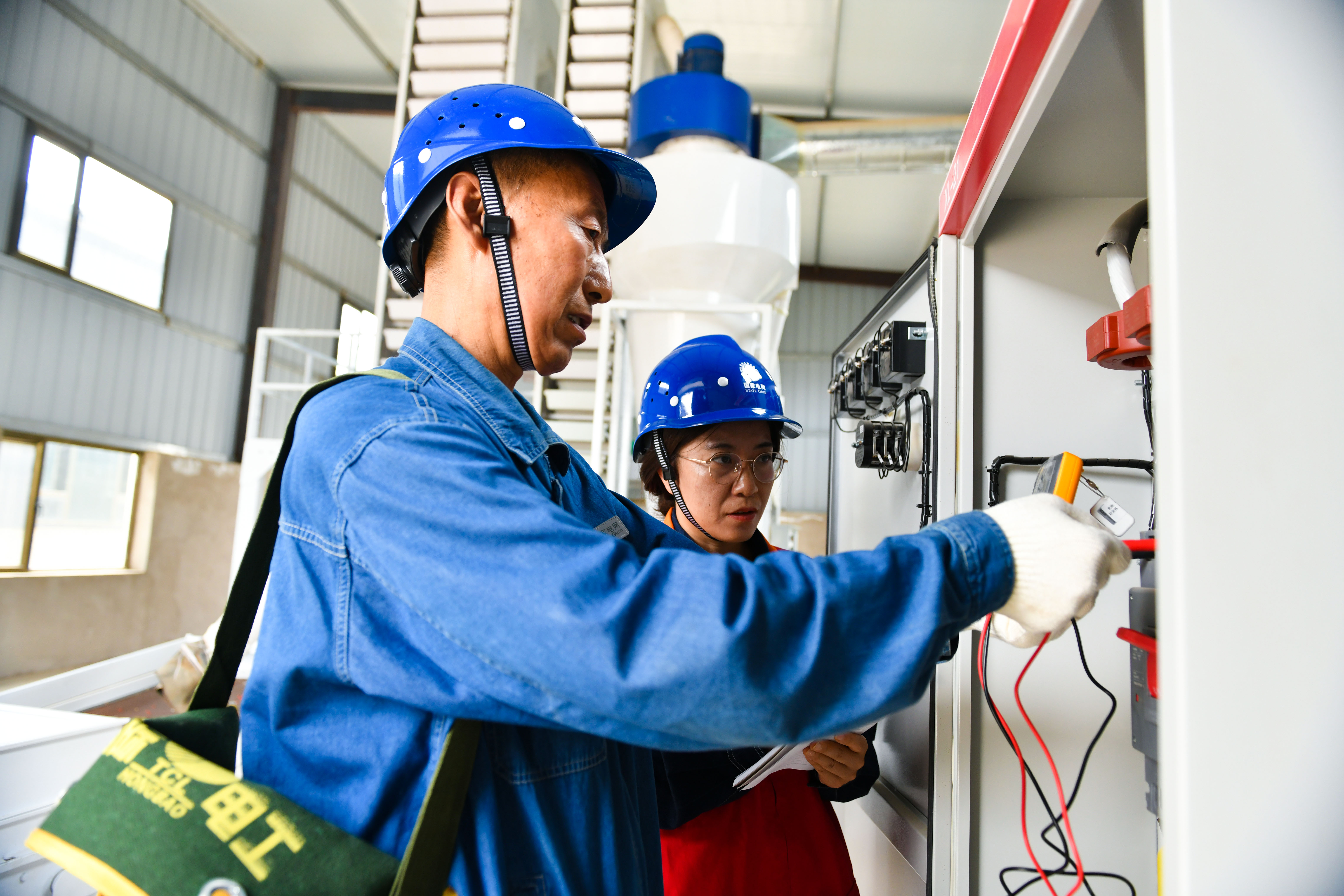 國網(wǎng)甘肅白銀供電公司員工走進種植生產(chǎn)基地開展安全隱患排查工作。李重漢 攝