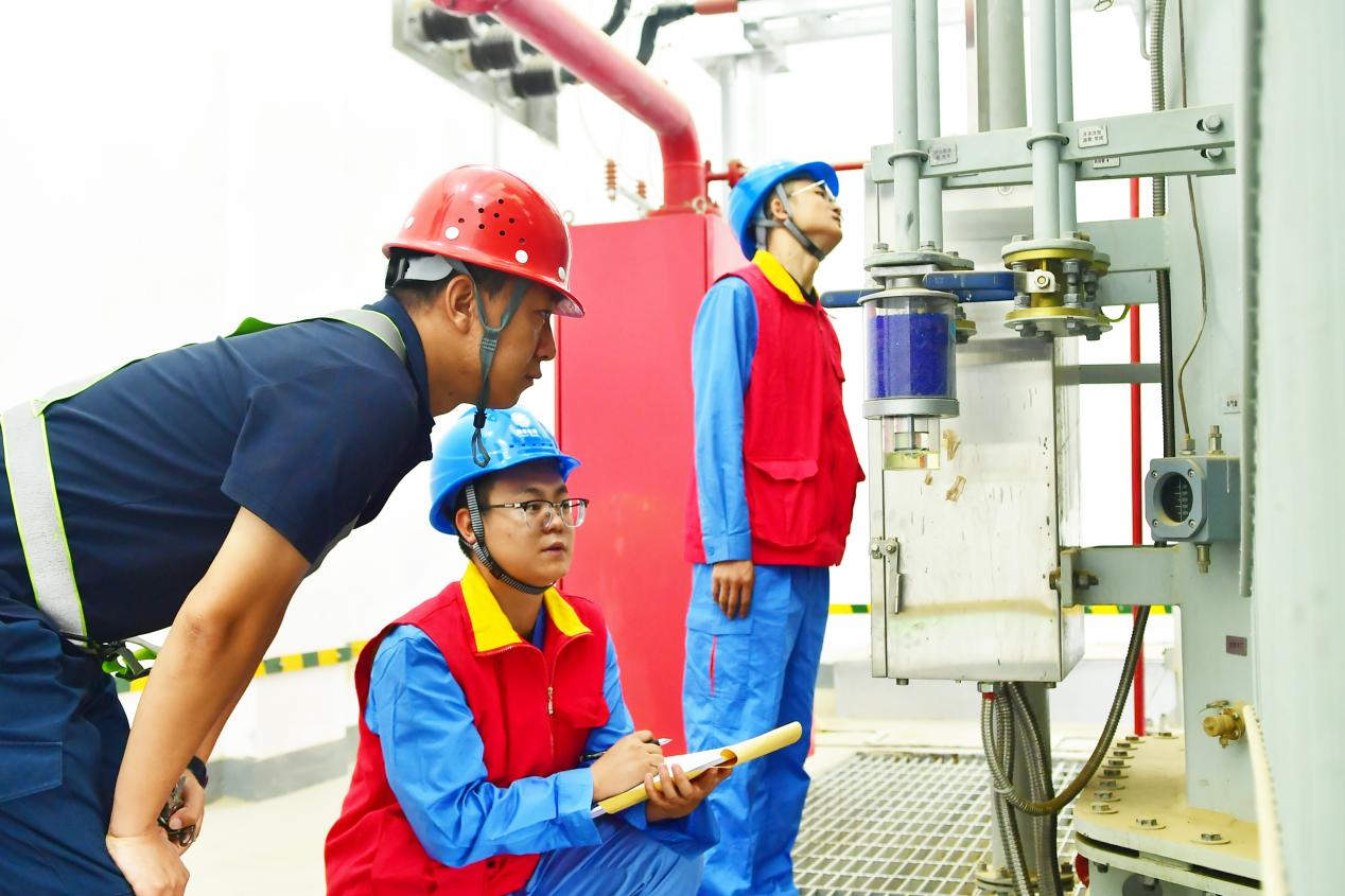 國網(wǎng)海東供電公司員工幫忙檢查機場110千伏翼樞變電站GIS設(shè)備運行狀況。李永鵬 攝