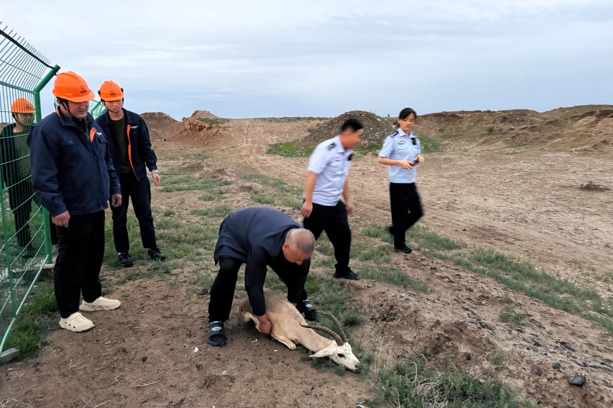 警察會同野生動物救助專家到現場后,仔細查看了“客人”的傷勢,并向大家科普了“客人”的真實身份,原來這位意外來客是珍貴的荒漠精靈“鵝喉羚”,是國家二級重點保護動物。由于前腿受傷比較嚴重,無法站立行走,需要安靜休養(yǎng)兩天。在查看了場區(qū)環(huán)境后,專家建議暫時將鵝喉羚安置在場區(qū)。