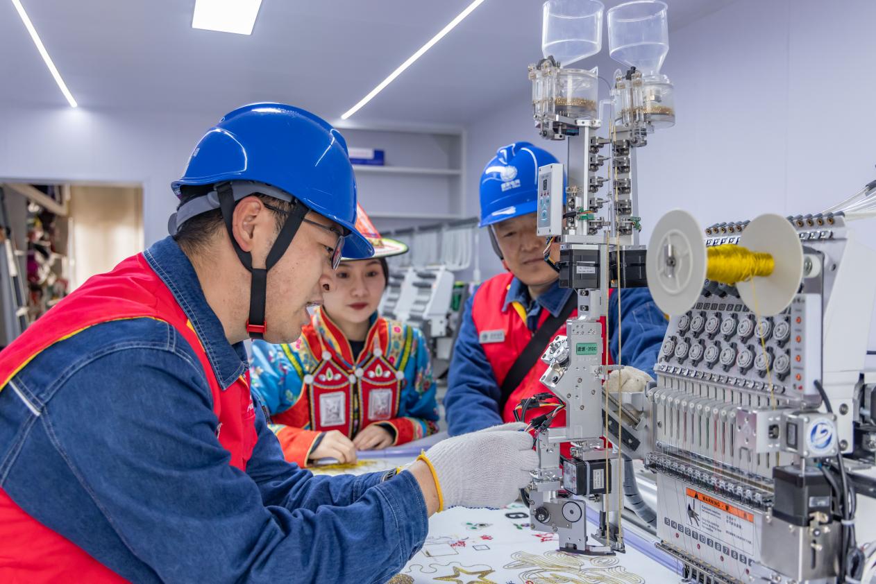 在轉(zhuǎn)經(jīng)輪廣場(chǎng),織褐子、捻線、寶敖、刺繡等原生態(tài)非遺項(xiàng)目吸引大量游客駐足拍照打卡,來(lái)自五湖四海的游客親身體驗(yàn)裕固族服飾文化,鑒賞裕固族手工藝品,在體驗(yàn)過(guò)程中深入了解其背后的民族文化。隨著裕固族服飾制作產(chǎn)業(yè)的發(fā)展,刺繡加工產(chǎn)業(yè)逐步電氣化,該公司主動(dòng)靠前服務(wù),量身定制用電方案,優(yōu)化供電線路,定期開(kāi)展用電設(shè)備巡檢,提供技術(shù)指導(dǎo),以“零距離”服務(wù)確保生產(chǎn)線穩(wěn)定運(yùn)行,加強(qiáng)企業(yè)用電安全監(jiān)測(cè),為非遺技藝的現(xiàn)代化轉(zhuǎn)型發(fā)展筑牢電力根基。