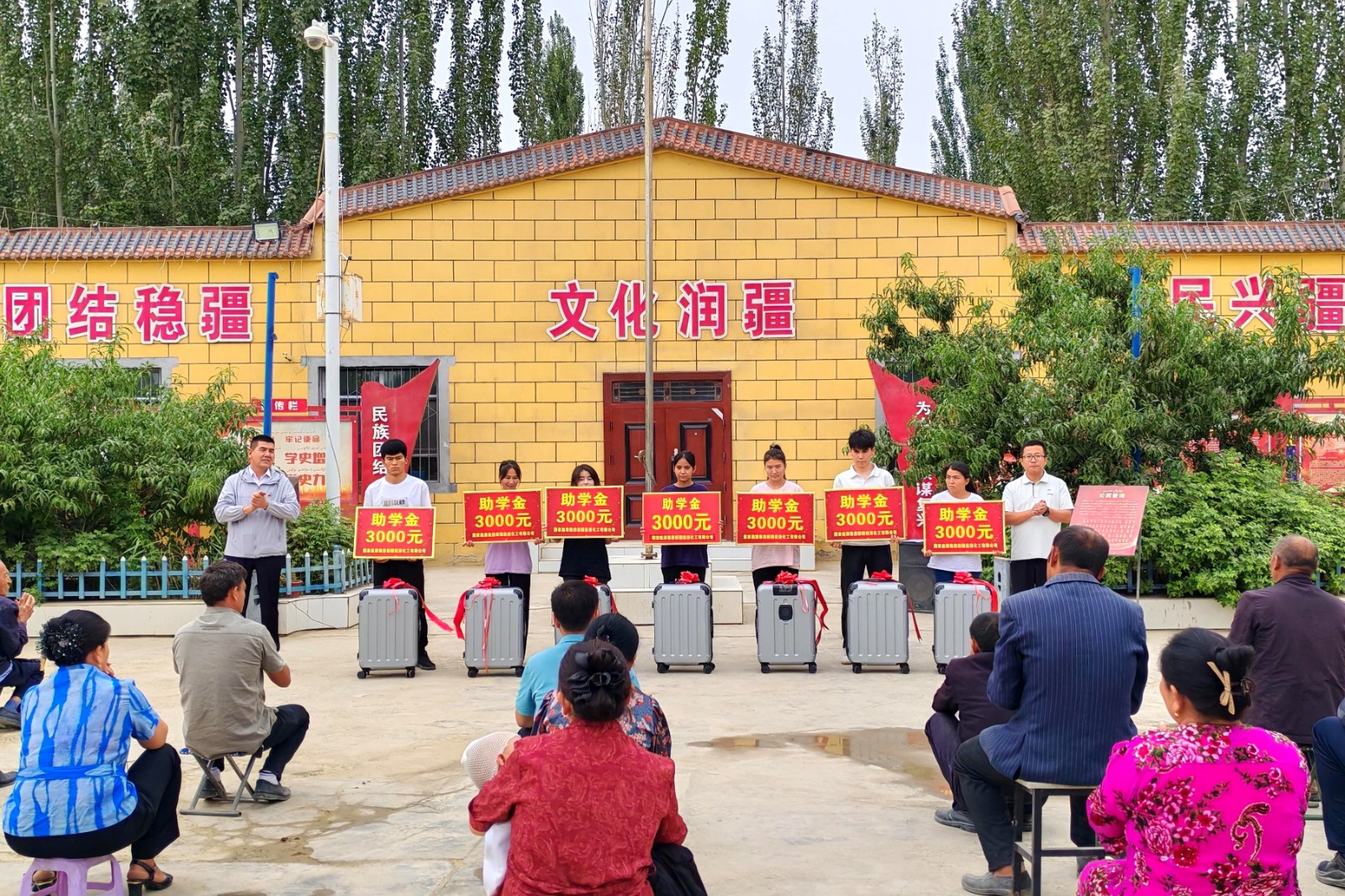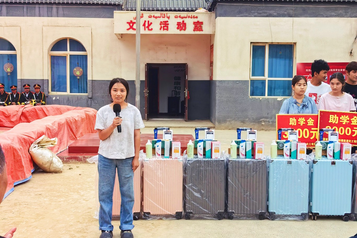“拿到喀什大學錄取通知書時,我既高興又憂心?!卑褪惨才_巴什村的素比努?麥托合提攥著助學金,哽咽地說起家里的情況,“我家就幾畝小麥,爸媽為供我和妹妹上學一直省吃儉用,大學的學費是一筆不小的開支,為此一家人一籌莫展?!彼皖^蹭了蹭禮包里的筆記本,眼眶紅了:“工作隊叔叔們得知我考上大學的消息后,常安慰我們家人‘別愁’,鼓勵我安心去上學。今天給我資助學費和行李箱,解決了我入學的燃眉之急,感謝工作隊的叔叔們!我一定好好學習,畢業(yè)了就回家鄉(xiāng),要讓家鄉(xiāng)的小麥長得比現在還壯!”
