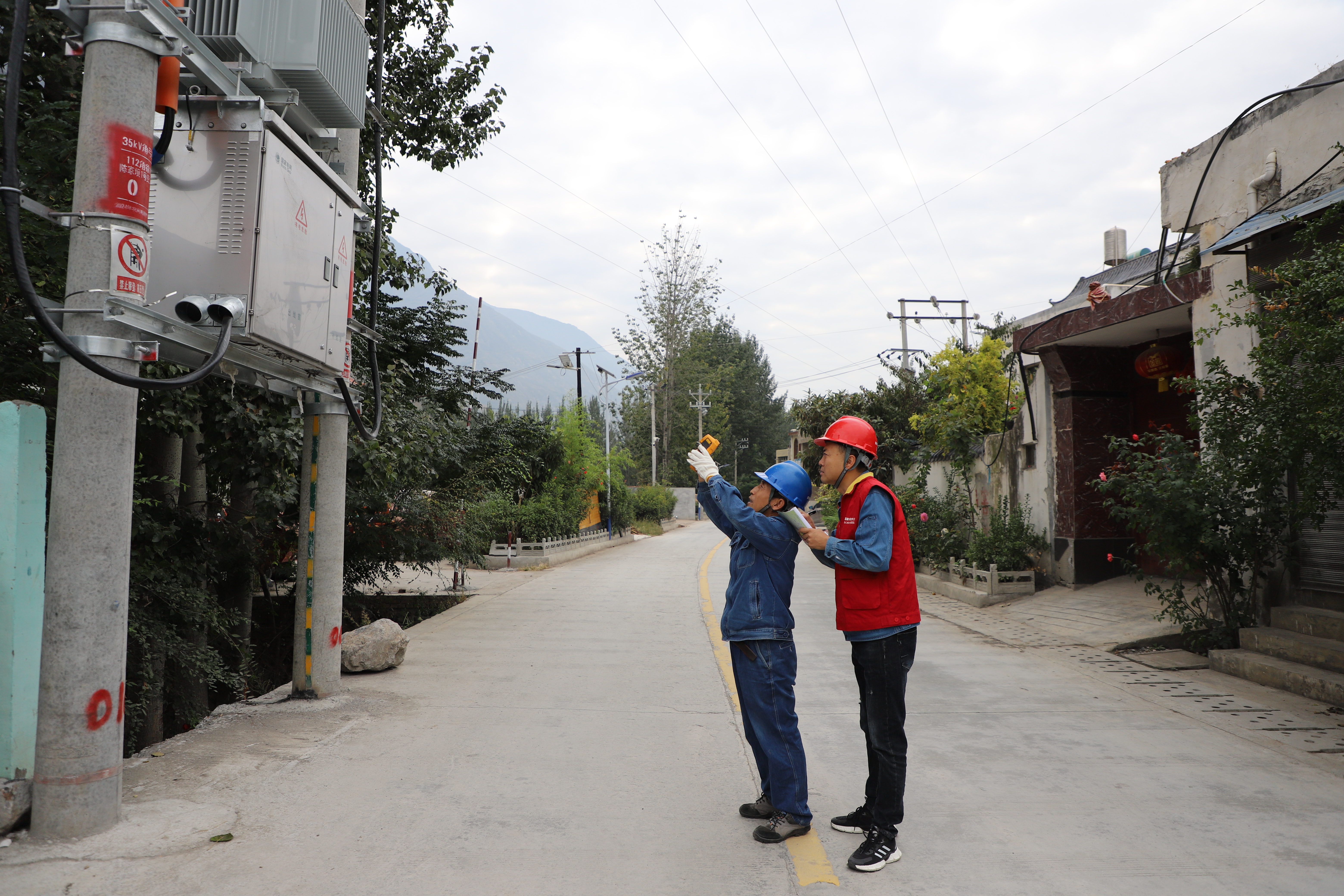 國(guó)網(wǎng)武都區(qū)供電公司員工陳彥紅和焦從軍為角弓街用戶檢查用電線路、設(shè)備。