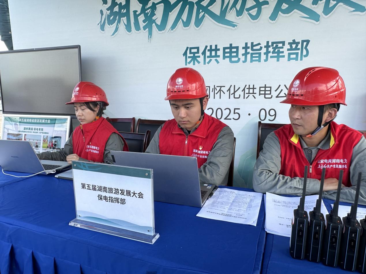 國網(wǎng)湖南電力(東方紅)共產(chǎn)黨員服務(wù)隊(duì)在第五屆湖南旅游發(fā)展大會(huì)保電指揮部實(shí)時(shí)待命。
