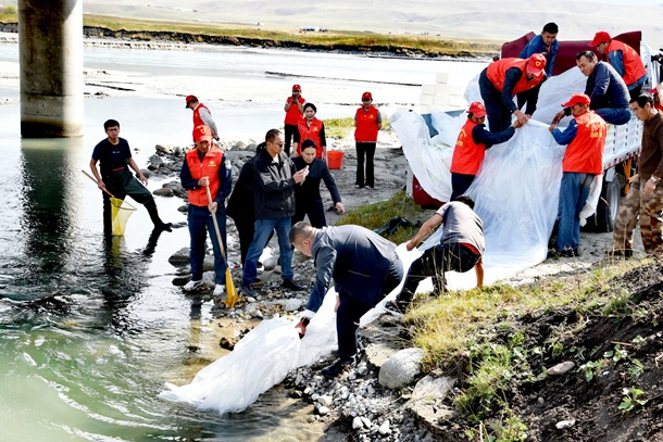 岸邊,年逾七旬的哈薩克族老人沙勒克江?依明拄著拐杖,目光緊緊追隨著遠(yuǎn)去的魚(yú)群。作為這片草原變遷的見(jiàn)證者,他感慨道:“河水記得一切。這些年,年年都見(jiàn)你們來(lái)放魚(yú)苗,河水里的‘銀色影子’確實(shí)越來(lái)越多了。魚(yú)兒回來(lái),河就有了靈魂?!崩先说脑挊闼卣鎿?,道出了十六年守護(hù)最珍貴的回響——生態(tài)的脈搏正在復(fù)蘇、愈發(fā)強(qiáng)勁。