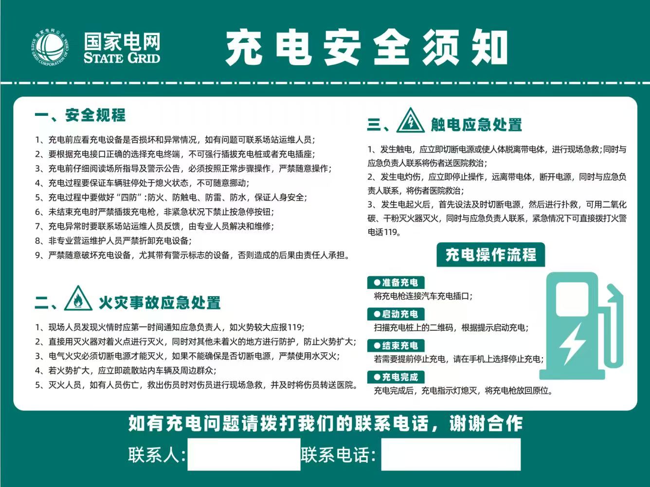 張貼海報(bào),做好文明提醒。該公司在確保充電樁能用好用的基礎(chǔ)上,擬定文明充電溫馨提示語(yǔ),內(nèi)容包括“文明充電講風(fēng)格、規(guī)范操作重安全”“打雷扯閃下大雨,充電先要避一避”“充電時(shí),切莫在車(chē)內(nèi)玩手機(jī)睡大覺(jué)”“突感身體不適,請(qǐng)趕快撥打120”等。這些溫馨提示被印制成條幅,懸掛、張貼在充電樁現(xiàn)場(chǎng),讓新能源車(chē)主看得見(jiàn)、記心間,有效防止因插隊(duì)、爭(zhēng)搶充電引發(fā)矛盾,營(yíng)造文明和諧友好的充電氛圍。