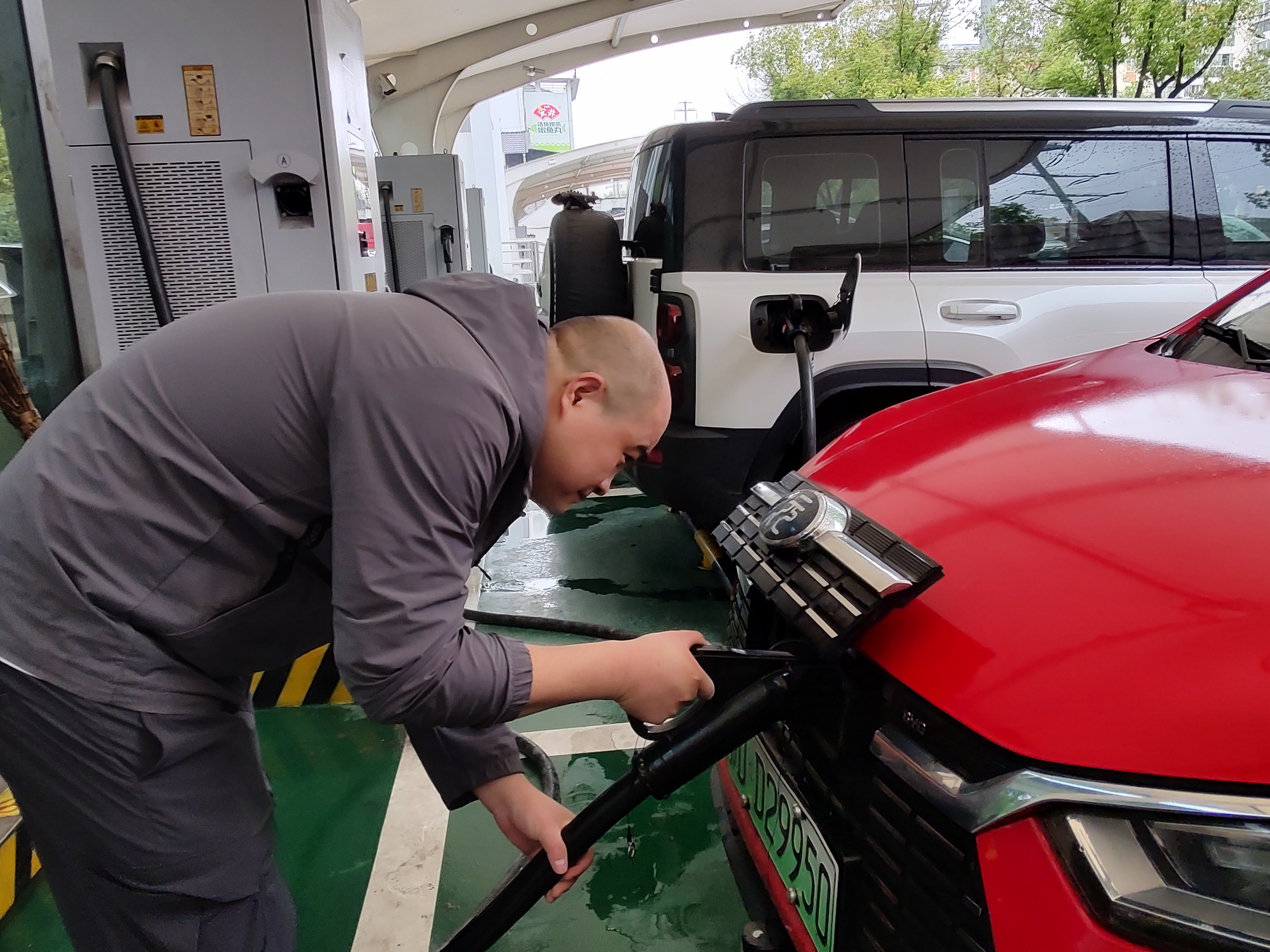 工作人員不顧天黑路滑,從家里匆匆趕來。他拿起充電槍仔細檢查,發(fā)現(xiàn)槍頭的9個孔里塞滿了泥土、草渣等雜物。經(jīng)過細心清理后再試,充電終于恢復正常。得知馬玉寧為了趕路還沒吃晚飯,工作人員熱情地說:“我家離這兒不遠,看您饑寒交迫,不如讓愛車在這兒充電,您跟我回家先弄點吃的充充饑。”
