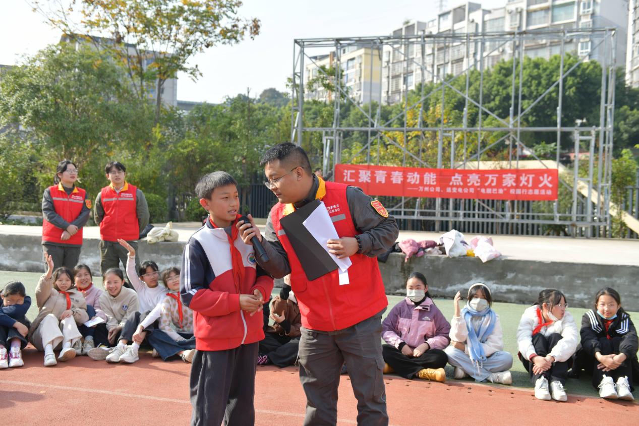 志愿者結(jié)合少年兒童的認知特點,摒棄枯燥說教,采用情景模擬、互動問答等多種形式,為孩子們講解“電的危險在哪里”“怎樣預防觸電”“觸電急救”等基本知識?!半娏χR大闖關”互動環(huán)節(jié)將活動推向高潮,孩子們爭相舉手搶答,現(xiàn)場氣氛特別活躍。陽光普照的校園操場上,回蕩著孩子們爽朗的歡笑聲。