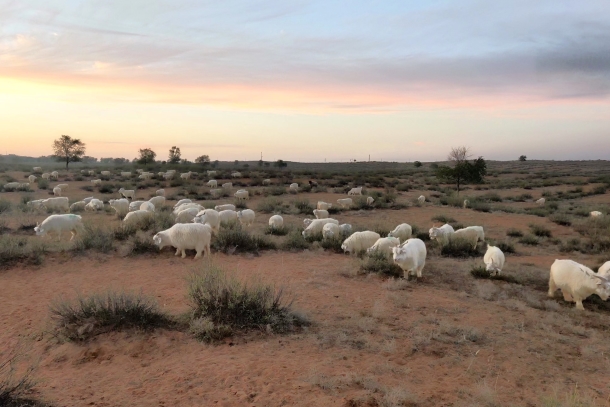 圖為寧夏鹽池縣營盤臺村的羊在廣袤草原上自由覓食