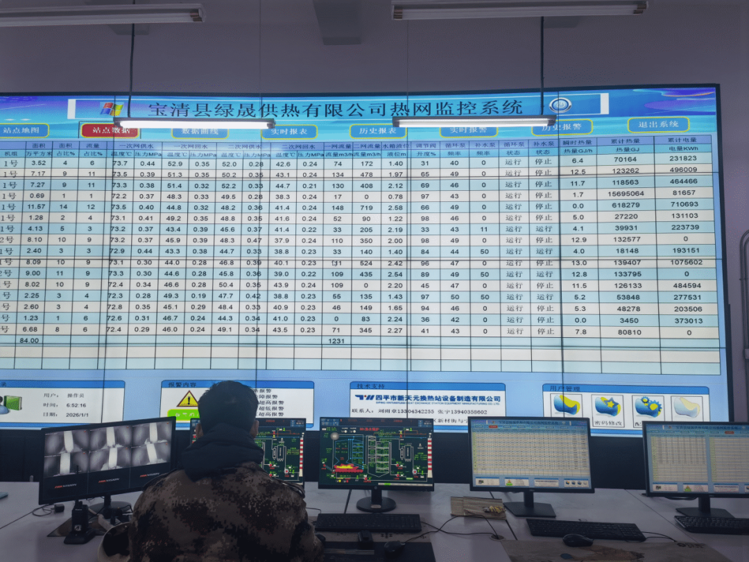 公司各崗位工作人員各司其職、協(xié)同聯(lián)動。調度中心內(nèi),工作人員緊盯熱網(wǎng)監(jiān)控系統(tǒng),實時監(jiān)測各站點供回水溫度、壓力、流量等關鍵數(shù)據(jù),密切關注設備運行狀態(tài)及報警信息,精準調控各項運行參數(shù),確保供熱系統(tǒng)高效運轉。