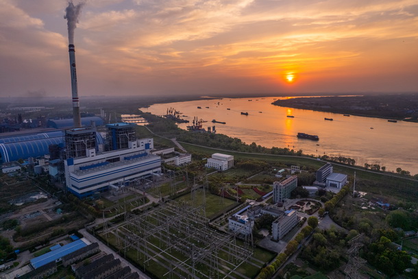 圖為位于長江沿岸的安徽銅陵電廠側(cè)面圖