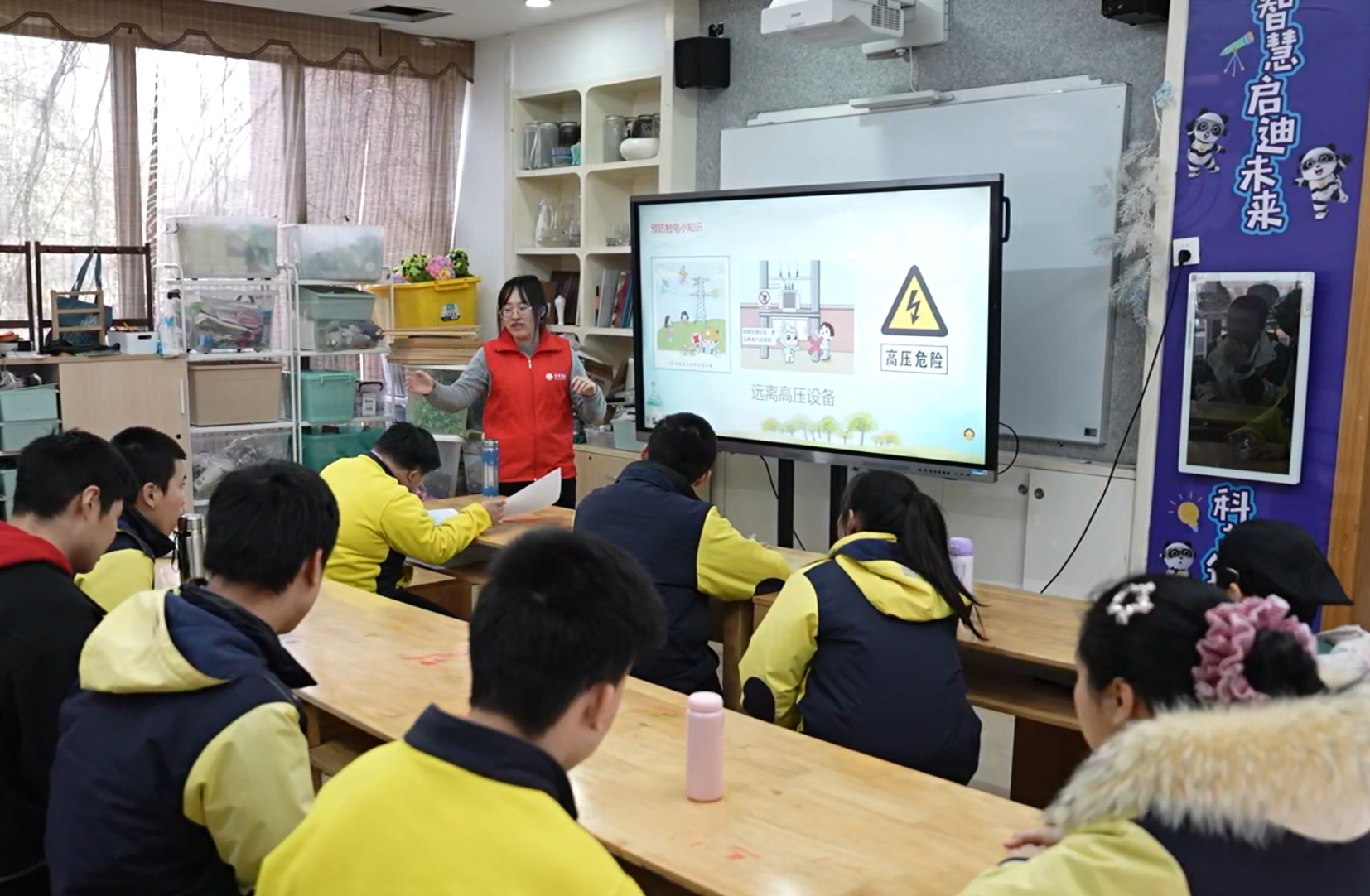 該公司服務隊精心設計安全教育內容,用色彩鮮明的圖示、簡單易懂的兒歌和競猜游戲,向孩子們生動講解家庭安全用電知識與春節(jié)期間的安全小貼士?!安荒苡脻袷钟|碰插座”“看到斷落的電線要遠離”……在隊員們的耐心引導下,孩子們積極參與、踴躍回答,在輕松氛圍中將安全用電、平安過節(jié)的重要知識植入心里。
