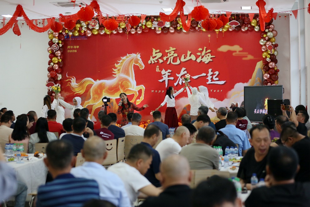 新春聯(lián)歡會(huì)分為包餃子DIY、領(lǐng)導(dǎo)致詞、文藝表演、幸運(yùn)抽獎(jiǎng)、同心合唱等環(huán)節(jié),中印尼員工精心排練、傾情演繹,男聲獨(dú)唱、女聲對(duì)唱、詩(shī)朗誦、創(chuàng)意舞蹈、歌舞串燒等節(jié)目輪番登場(chǎng),現(xiàn)場(chǎng)笑聲、掌聲交織一起,喝彩聲、助威聲此起彼伏,演員活力四射,觀眾熱情滿滿,飽含著廣大員工和家屬對(duì)新的一年的美好向往和對(duì)企業(yè)高質(zhì)量發(fā)展的堅(jiān)定信心。雖然中印尼員工語(yǔ)言不同、習(xí)俗各異,但對(duì)美好生活的向往和對(duì)職業(yè)發(fā)展的追求卻是相通的,大家用共同的歌聲,跨越國(guó)界,傳遞心愿。