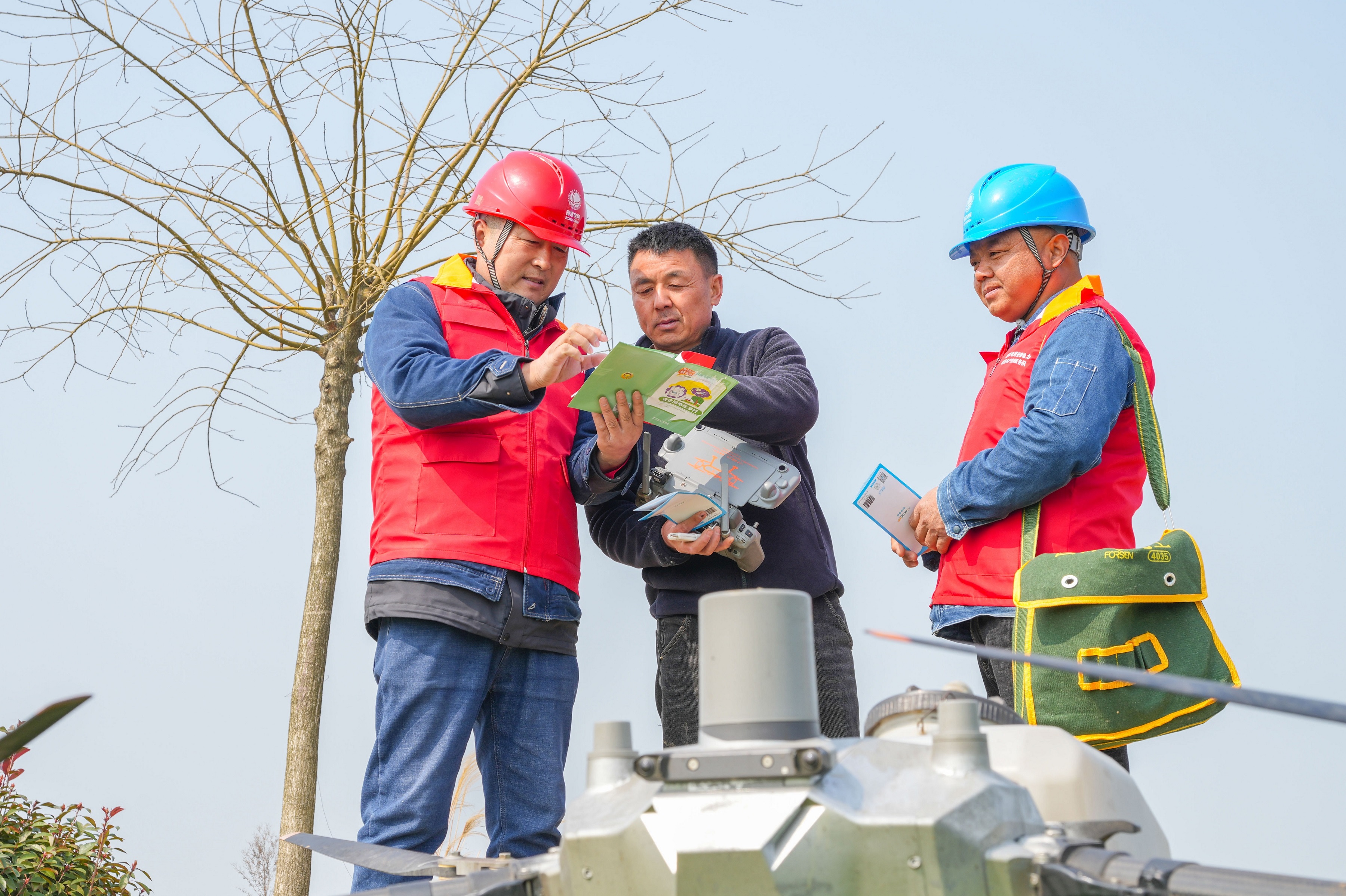 濉溪縣供電公司黨員服務(wù)隊(duì)對(duì)春耕植保無(wú)人機(jī)飛手開(kāi)展專(zhuān)項(xiàng)安全宣講。儲(chǔ)運(yùn)濤 攝