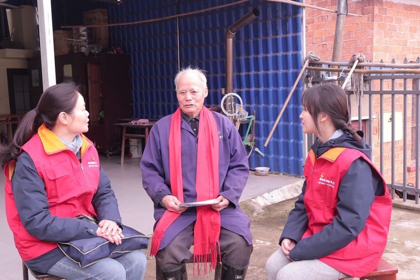 隊員們抵達青山島后,分成兩組,分別走進上山、下山、中山三個村落,入戶慰問。
